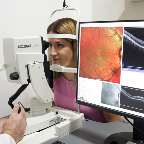 La tomografía de coherencia óptica es una moderna tecnología que nos permite realizar diagnósticos precisos de la condición de la retina y el nervio óptico; confirmar o descartar enfermedades y además valorar el grado de daño si es que lo hay.